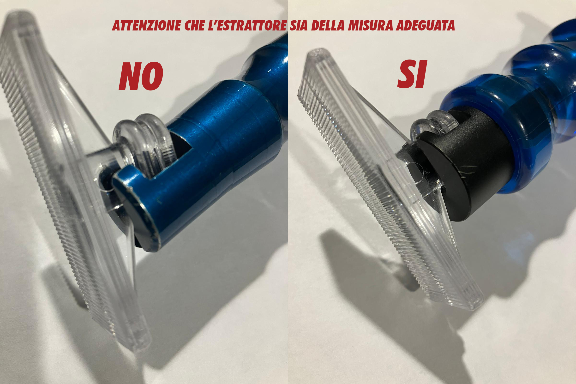 ATTENZIONE: per la conformazione del collo e la grandezza della testa, è necessario un estrattore dalla larghezza e profondità adeguate. Almeno 16mm di larghezza, 22 mm di profondità e imbocco a U da 15mm