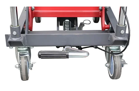 La dotazione standard del Carrello con Piattaforma Idraulica- Portata 300kg comprende 4 ruote grandi, di cui 2 sono ruote girevoli con freno, una robusta barra di spinta e una piattaforma arrotondata in acciaio. Una pompa idraulica si aziona a pedale e solleva il carico all’altezza di lavoro desiderata da un minimo di 35 cm ad un massimo di 128 cm.