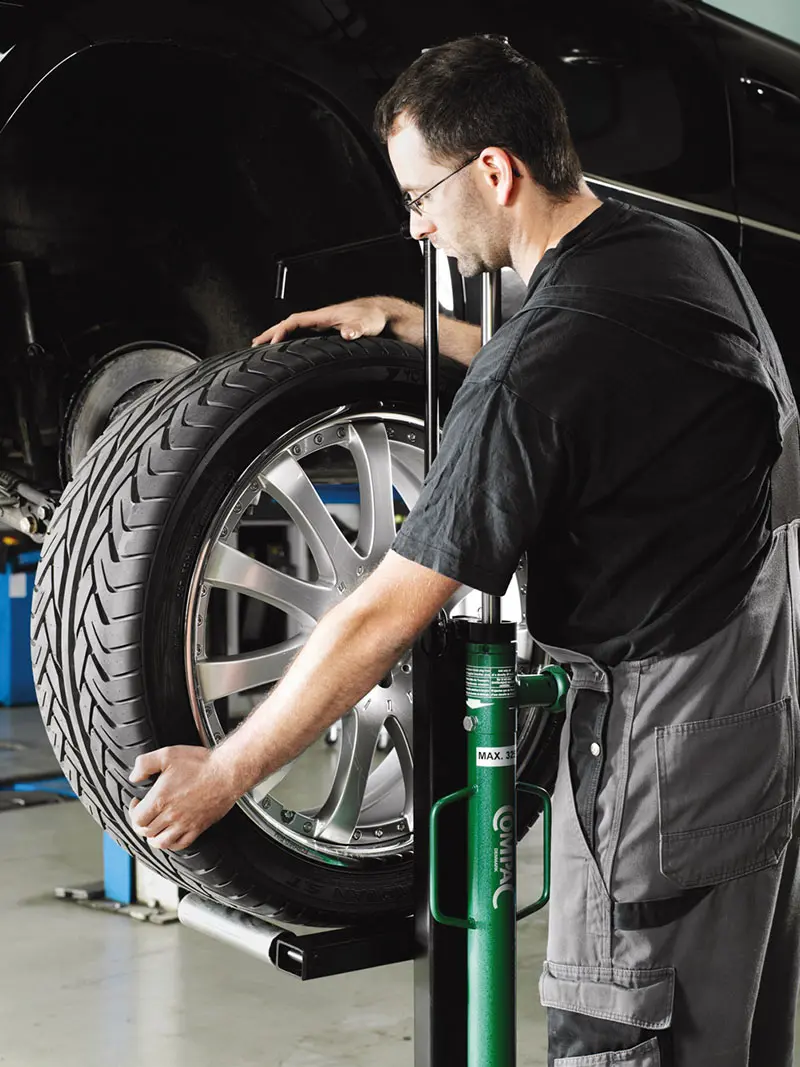 Per sollevare e posizionare senza fatica e in sicurezza ruote di auto e furgoni fino a 60kg e ø esterno fino a 820mm.