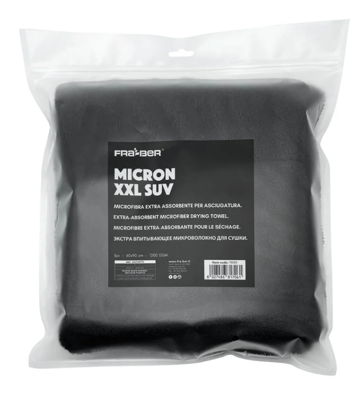 INNOVACAR Micron XXL SUV Panno Asciugatura 1200 gsm è un panno super assorbente ideale per asciugare l’auto dopo il lavaggio. La sua dimensione ma soprattutto la sua grammatura ( 1200 gsm= per metro quadrato) lo rendono il panno ideale per ascigare vetture di grandi dimensioni. INNOVACAR Micron XXL SUV Super Panno per Asciugatura 1200 gsm è in grado di assorbire l’acqua ma mantiene un peso contenuto, rendendo più agevole lo spostamento e di conseguenza l’utilizzo.