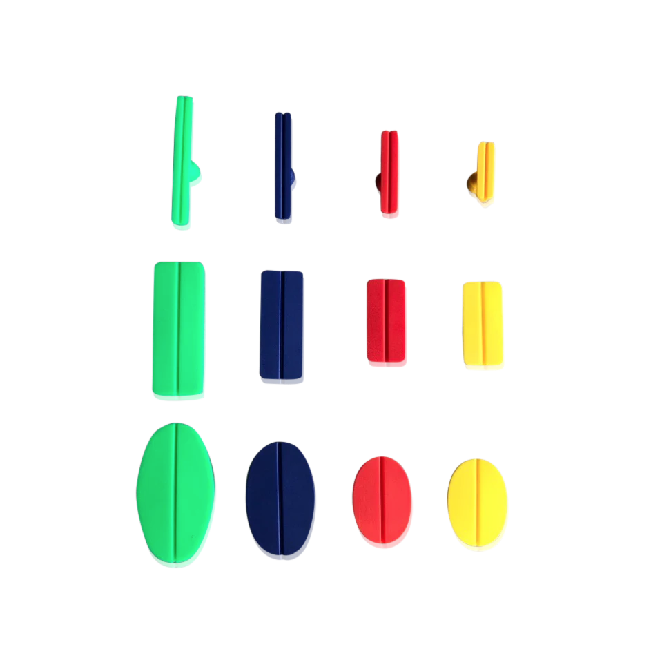 VENTOSE  GIALLENEREARANCIONEBIANCO : sono realizzate in un materiale che è una miscela dei materiali rosso e blu. Di conseguenza, hanno proprietà sia elastiche e morbide che dure.