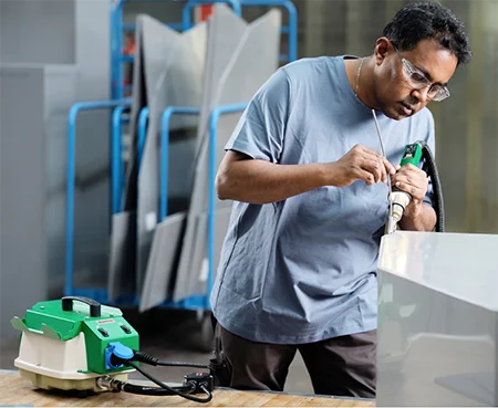 Il Generatore d’Aria di Leister fornisce la giusta quantità d’aria per le pistole termiche.
