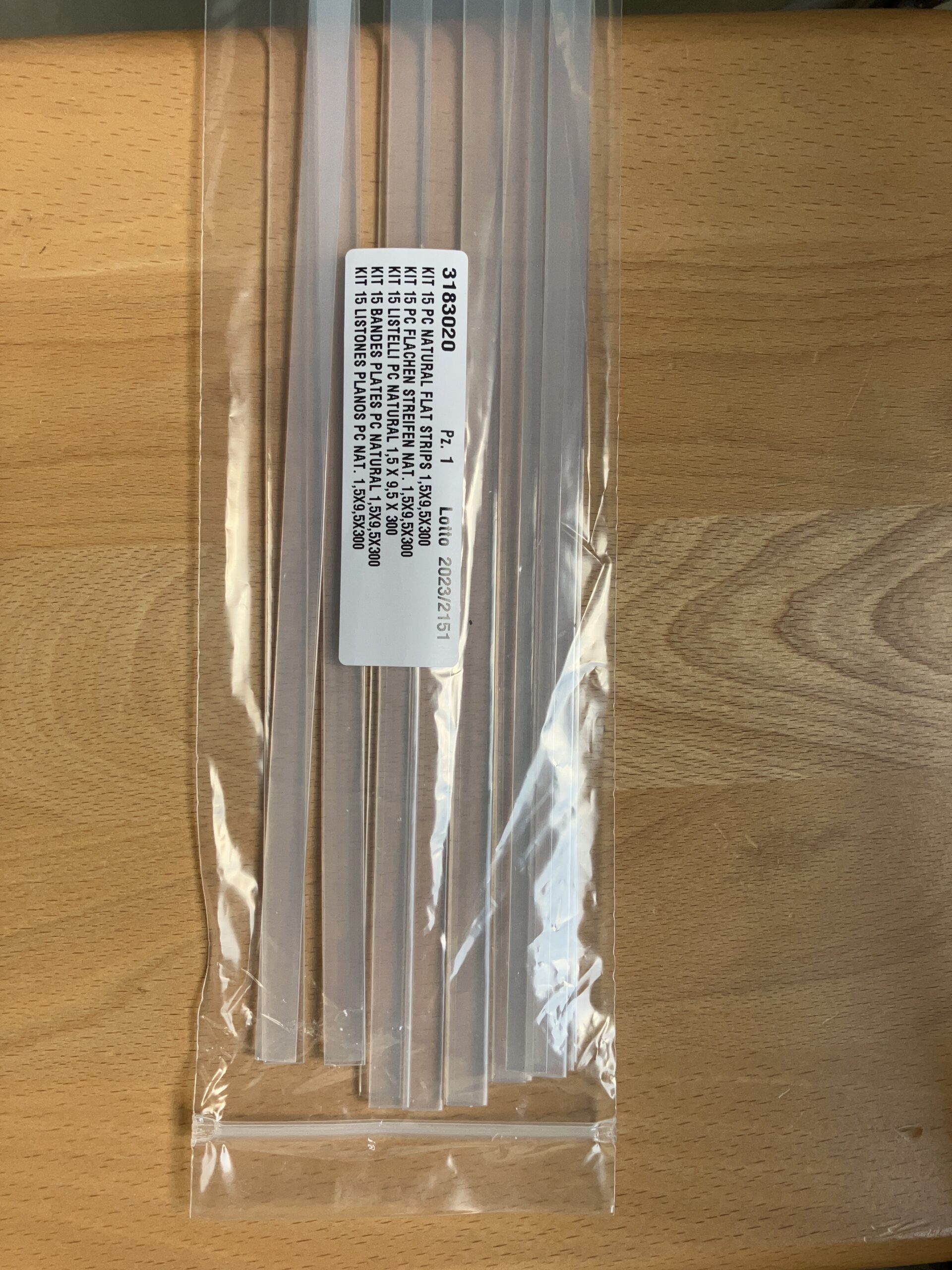 I Listelli Piani in PC – POLICARBONATO  sono in kit da 15 pezzi ideali per la riparazione delle plastiche auto trasparenti tramite saldatura ad aria.