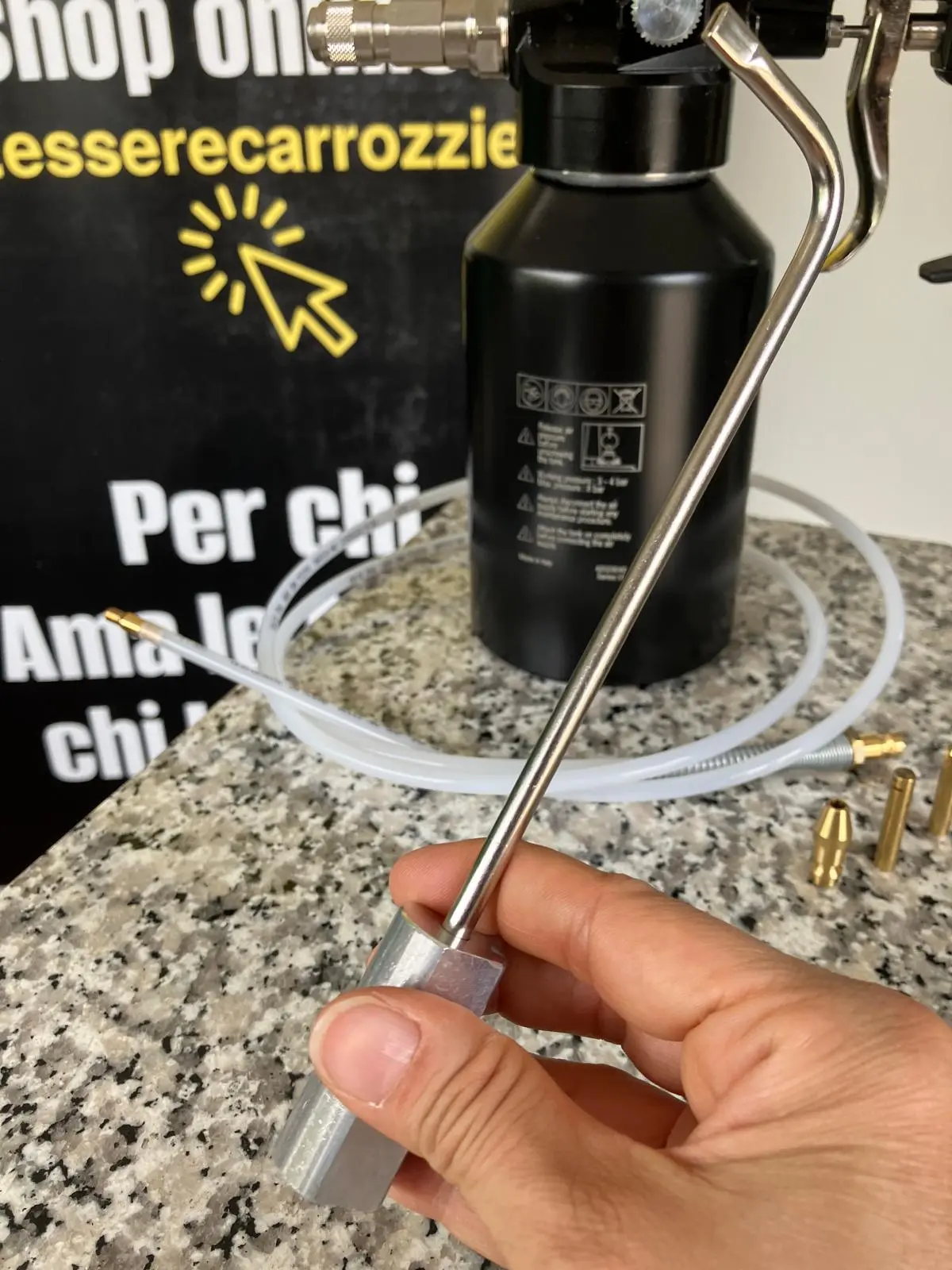 La pistola può essere usata in alternativa senza prolunga  semplicemente con l’ugello dritto.